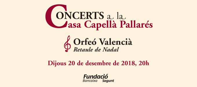 El próximo jueves 20 de diciembre, Fundación Bancaja ofrece el tradicional concierto Retaule de Nadal Fundació Bancaixa en el marco del ciclo Concerts a la Casa Capellà Pallarés. La actuación correrá a cargo del Orfeó Valencià, que bajo la dirección de Josep Lluís Valldecabres interpretará un programa con 16 piezas que van del siglo XVII a la actualidad de autores como Mikhaïl Ippolítov Ivànov, Charles Gounod, Johann S. Bach, Felix Mendelssohn, Max Reger, Robert Sund o Javier Busto.